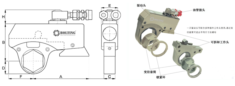 產(chǎn)品的選取依據(jù)螺栓鎖緊和拆松扭矩而定,扭矩值會(huì)因螺栓直徑和強(qiáng)度等級(jí)不同而有所變化。 |