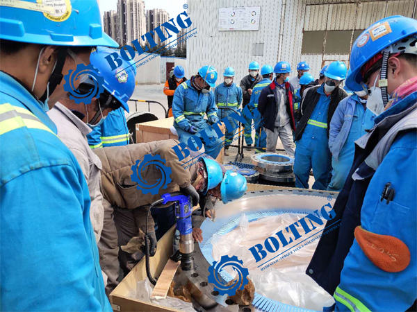 為助力青島某海洋工程有限公司建設(shè)世界最大的乙二醇模塊化項(xiàng)目,我公司技術(shù)人員身赴現(xiàn)場(chǎng)培訓(xùn)指導(dǎo)數(shù)顯電動(dòng)定扭矩扳手的使用,獲得客戶(hù)的一直好評(píng)和稱(chēng)贊。